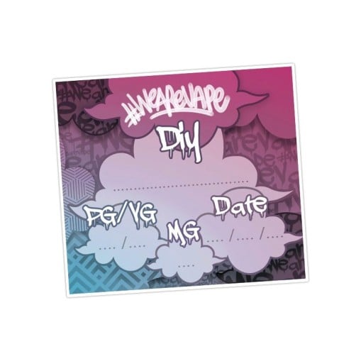 We Are Vape vous propose son lot de 10 étiquettes, idéales pour nommer et dissocier vos fioles de préparations DIY. Grâce à ces autocollants, vous pourrez inscrire le nom de votre recette, le taux de nicotine, le taux de PG/VG ainsi que la date de fabrication. Un accessoire indispensable pour tous les amateurs de DIY !