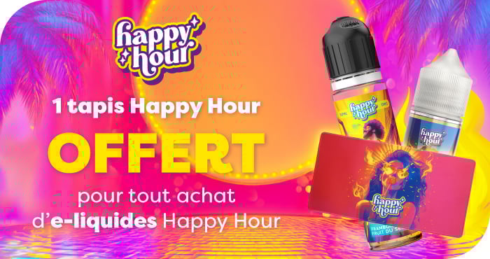 Pour tout achat d’e-liquides Happy Hour, repartez avec un tapis collector offert.